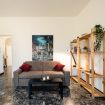 - un salone luminoso con divano letto con materasso memory foam, smart TV LG da 43'', ed il bellissimo tavolo da lavoro su cavalletti dell'artista
