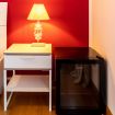 La camera è dotata di letto matrimoniale queen size con materasso in memory foam. Arredata in stile moderno e confortevole con un ampio armadio, TV, wi-fi, minibar e scrivania.
