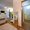 Il monolocale è arredato con gusto ed un tocco di romanticismo, ed offre un ambiente luminoso e arioso. La zona notte è dotata di un ampio letto matrimoniale con spaziosi comodini e prese internazionale ed USB C integrate.
