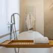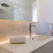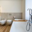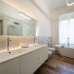 Il bagno unisce eleganza e benessere: oltre alla vasca indipendente Lugano, c’è una doccia walk-in in vetro extra-chiaro da oltre un metro e mezzo, semplicemente mozzafiato. I sanitari sospesi in ceramica e la caldaia a condensazione Immergas assicurano un’esperienza sempre rilassante, continua e senza compromessi.