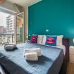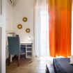 - una camera con letto matrimoniale queen size, divano letto a 2 posti, smart TV, armadio in stile moderno, una spaziosa cassettiera ed uno spazio da lavoro confortevole